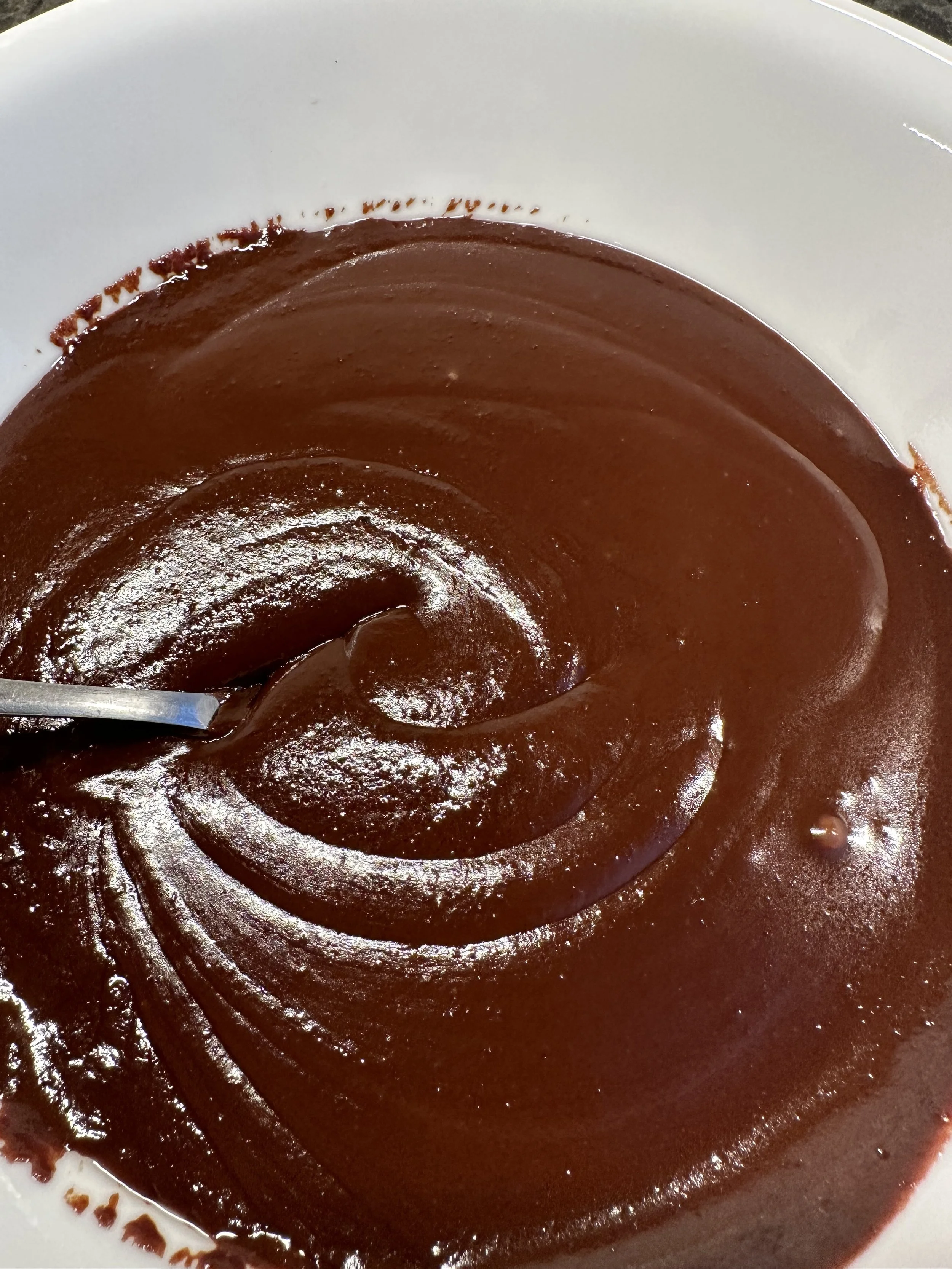 Keep over a medium heat and whisk until chocolate comes to a boil (about 5 minutes), reduce the heat to lower and continue to mix for 2-3 minutes